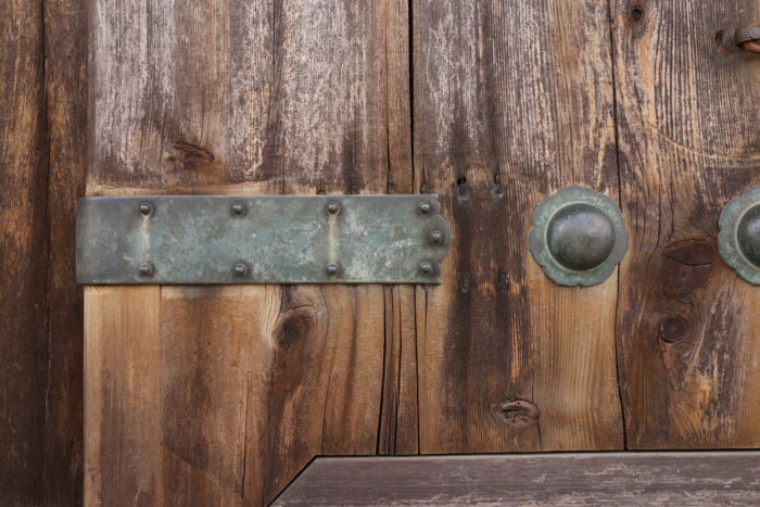 扉の飾金物。八双のわずかな丸みがとても上品である