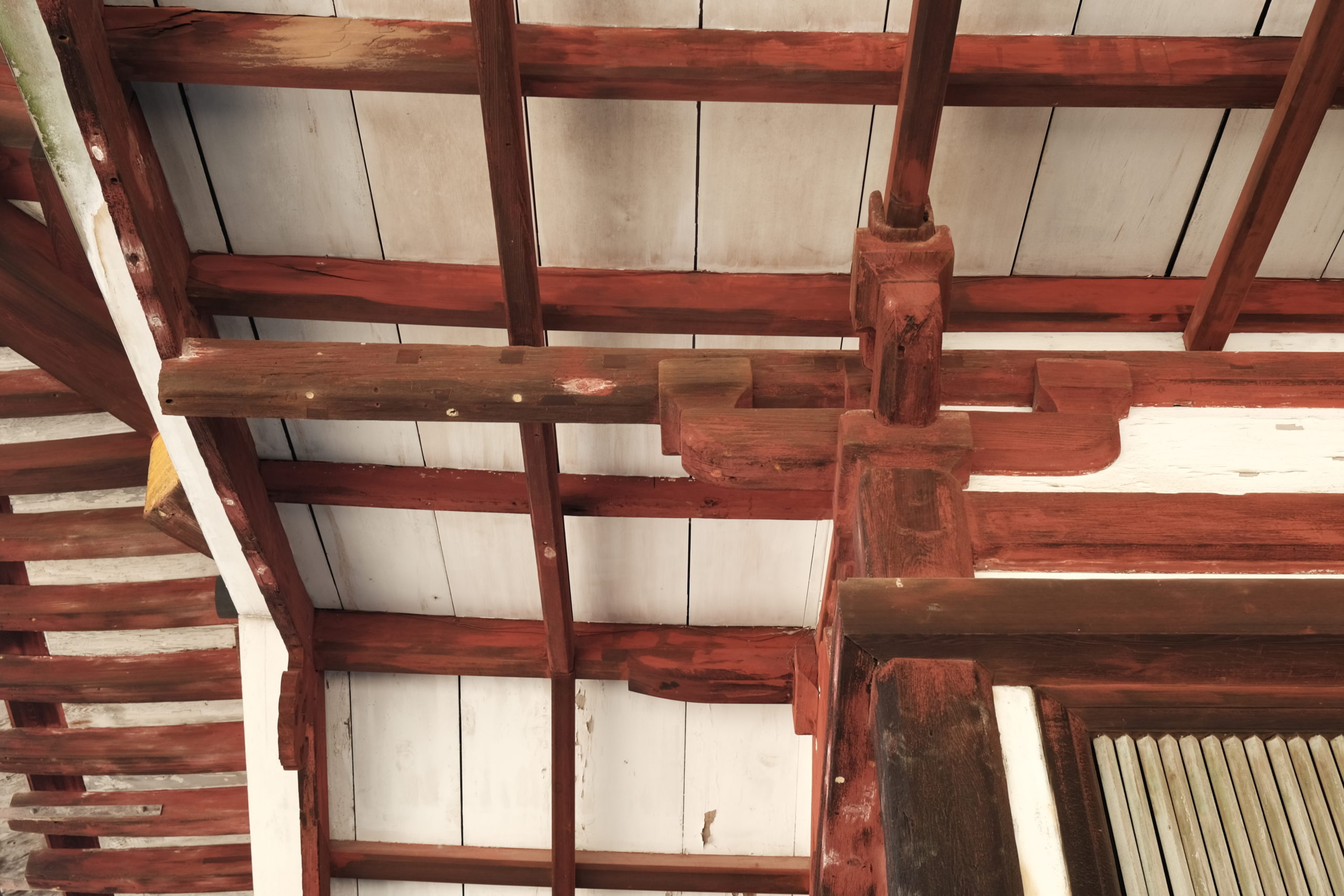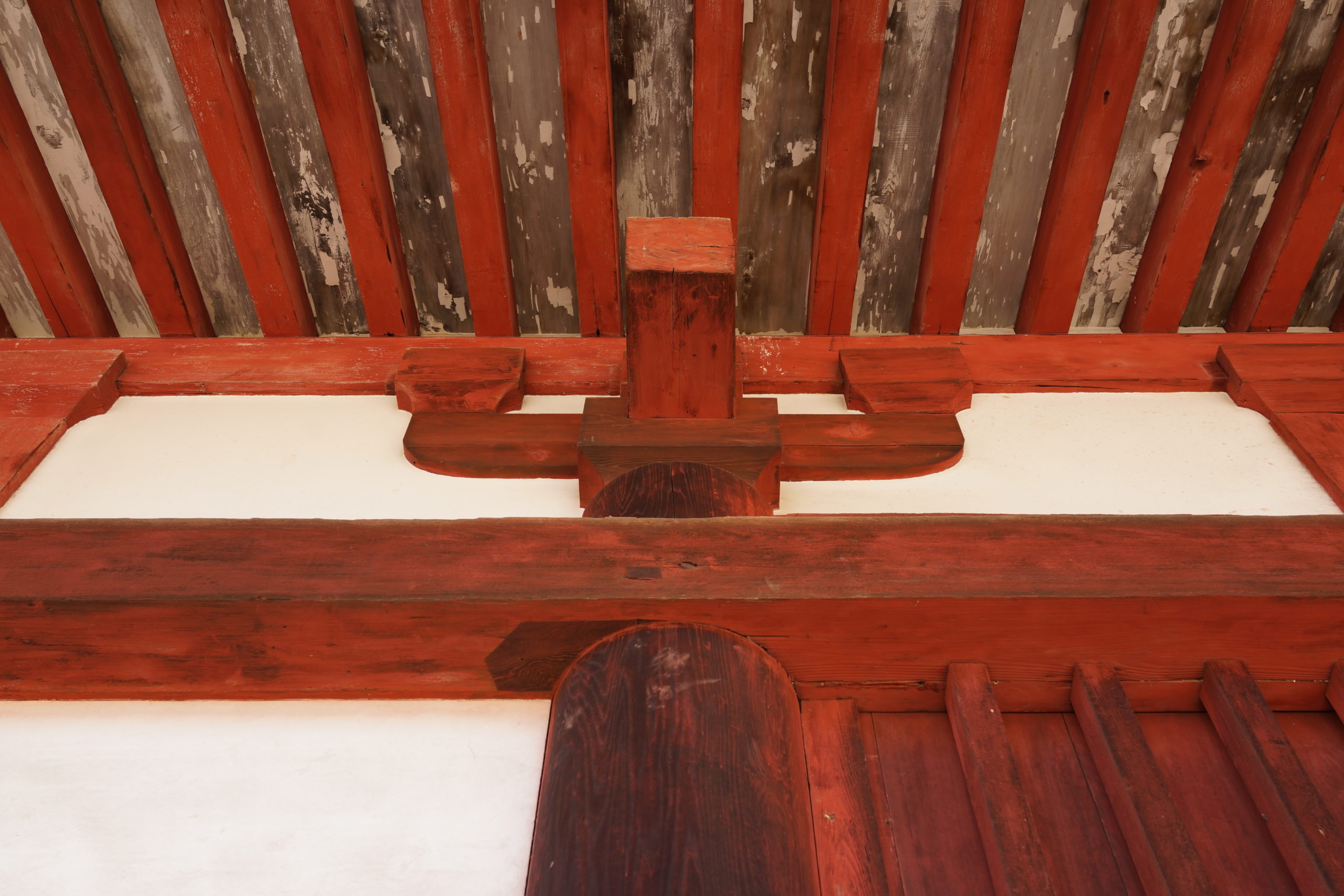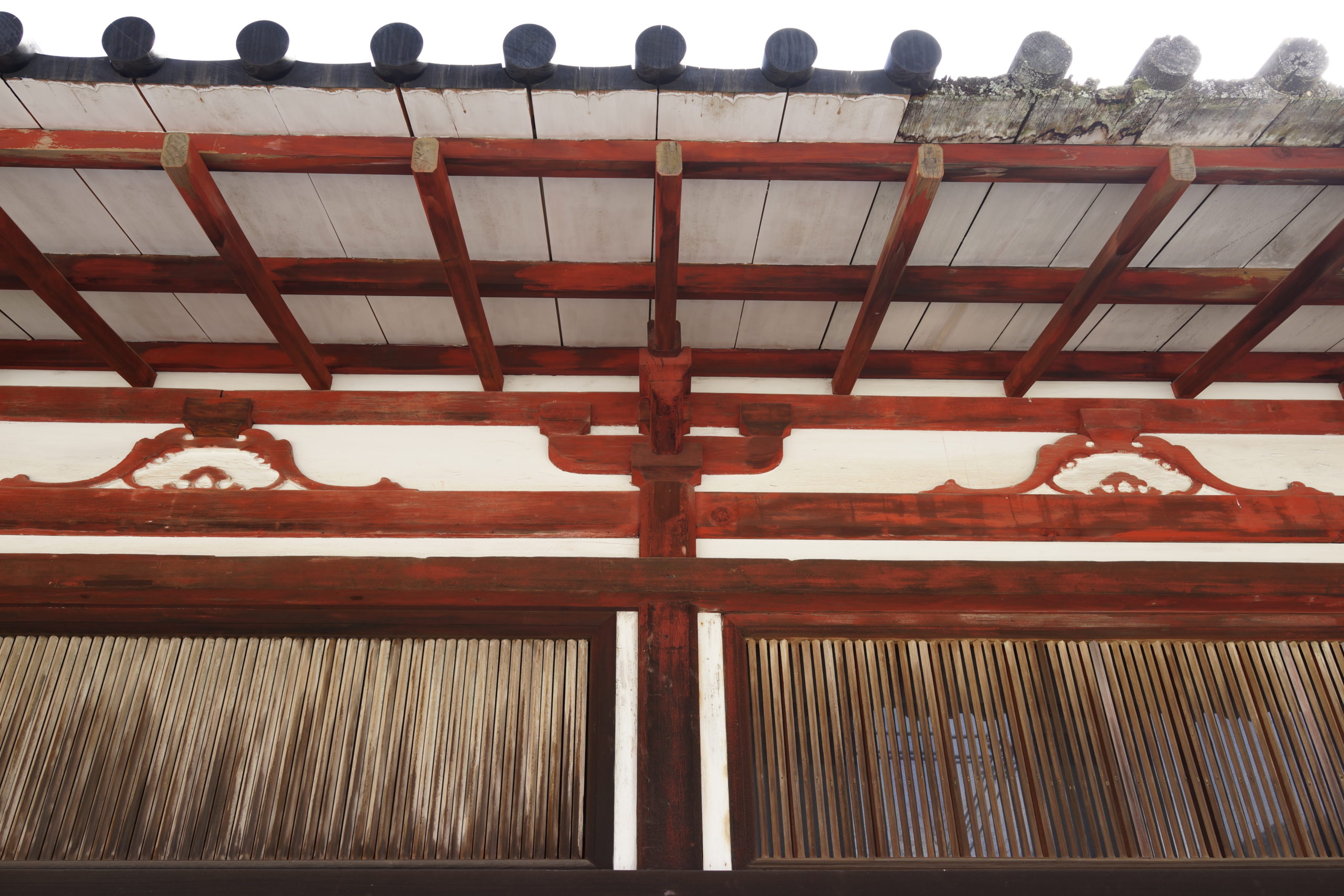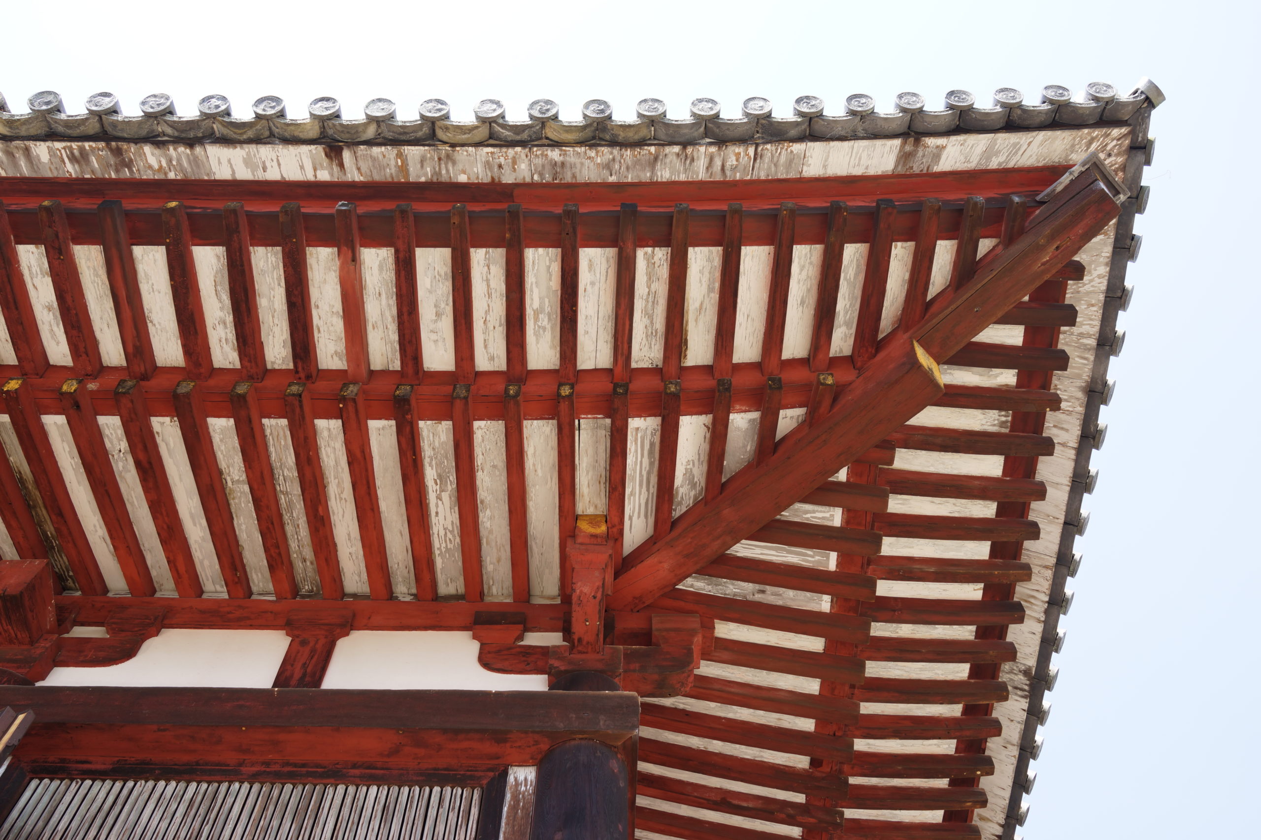 一方で中部は複雑である。様々な時代の意匠が入り混じり、柱と斗の取合いに不自然さがあったりして面白い。そのような中に、中世的な上品な錺金物がついてたり繊細な内外陣の結界があったりすると、あぁこれは奈良の建築だなーとしみじみ思うのである。
